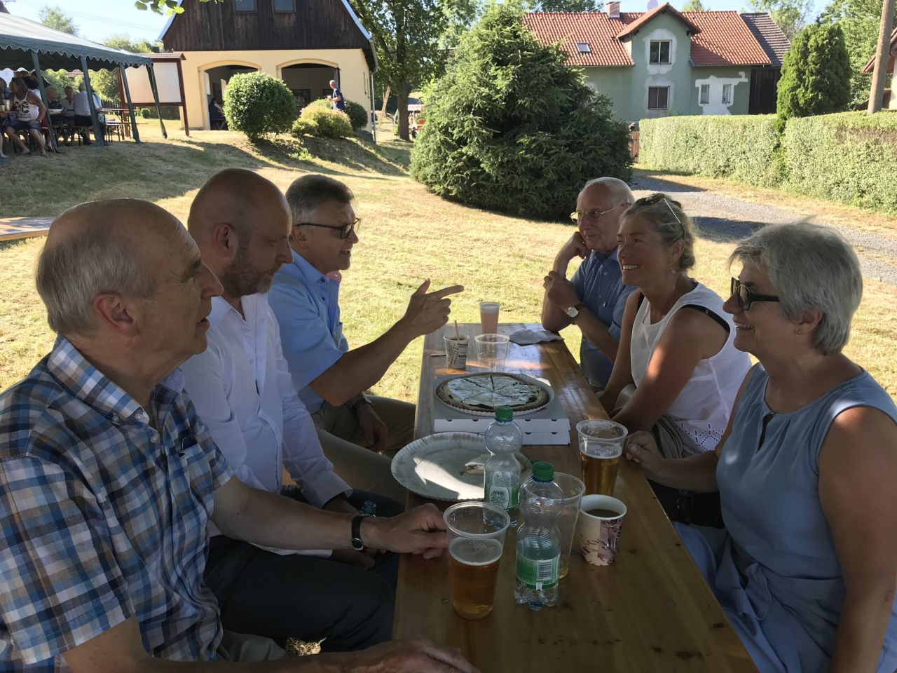 Sešli se opět společně maxovští, starousedlíci, chalupáři a bývalí němečtí rodáci, kteří si každoročně nenechají ujít pouťové setkání. Po ukončení německo-české mše svaté navštívili za doprovodu dudácké muziky poutníci ještě maxovský hřbitov, který byl znovu vysvěcen. Poté se všichni odebrali k bývalé hasičské zbrojnici, kde si mohli opět po roce společně zavzpomínat a zazpívat. Pan starosta nezapomněl poblahopřát k významnému životnímu jubileu panu Josefu Neumeierovi, který setkání bývalých maxovských rodáků pravidelně pořádal. Samozřejmě nemohlo chybět ani občerstvení, o které se výtečně postarali zaměstnanci ZOD Mrákov. V letošním roce se bohužel z rodinných důvodů nemohl poutě zúčastnit hrabě Alexandr Graf Schönborn se svojí rodinou. O to větší bude jistě jejich překvapení, až na pouť zavítají příští rok. Okolí maxovského kostelíka se totiž díky terénním úpravám a výsadbě zeleně změnilo téměř k nepoznání.