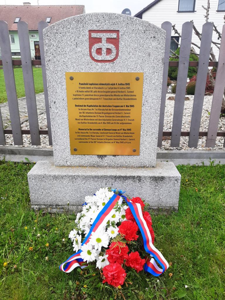 Kapitulaci německých vojsk si připomínáme ve Všerubech 4. května, kdy v domě č. p. 1 přijal velitel 90. pěší divize brigádní generál Herbert L. Earnest kapitulaci 11. pancéřové divize generálporučíka Wenda von Wietersheima s velitelem generálmajorem H. F. Treuschem von Buttlar – Brandenfelsem.