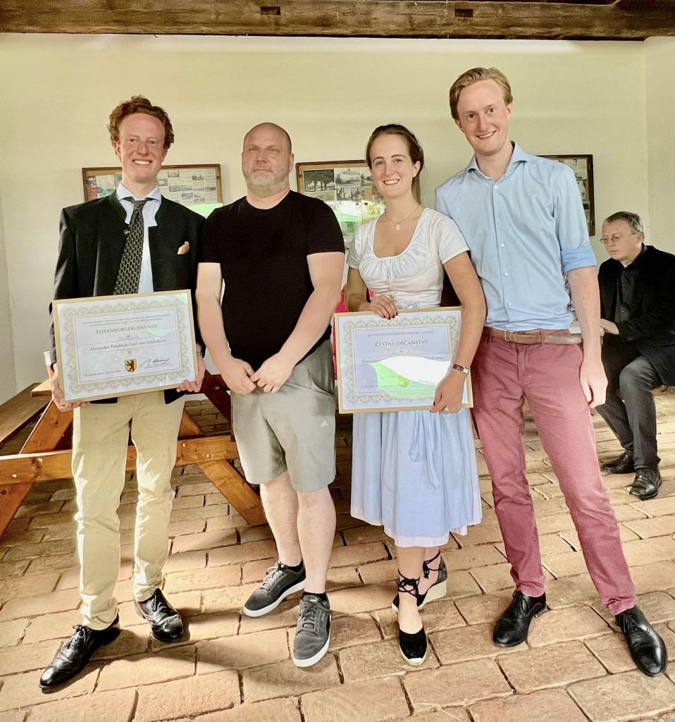 Svojí návštěvou nás poctil hrabě Friedrich Schönborn se svými dvěma sourozenci a při té příležitosti došlo k předání titulu Čestného občanství Alexandru Friedrichu hraběti ze Schönbornu.