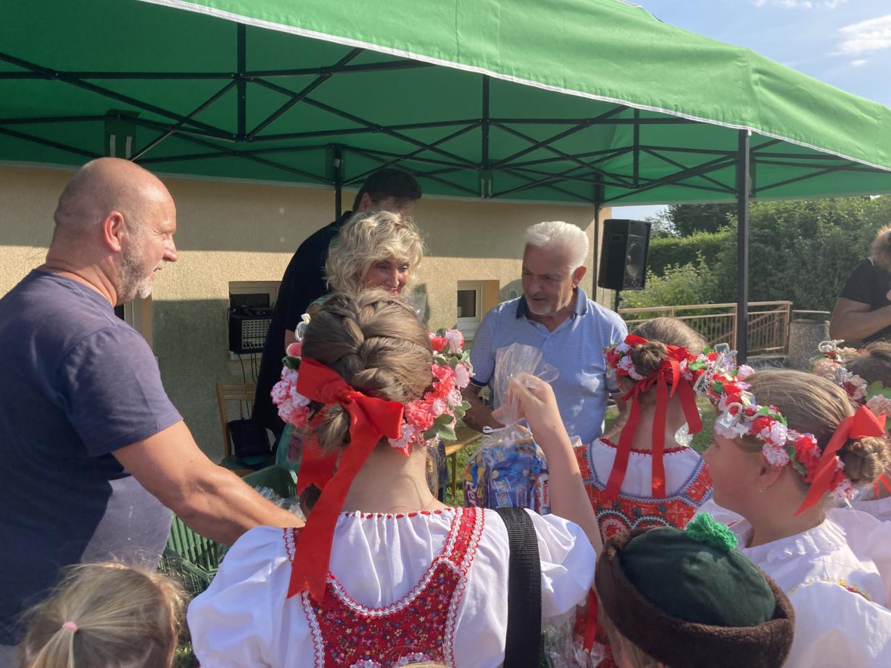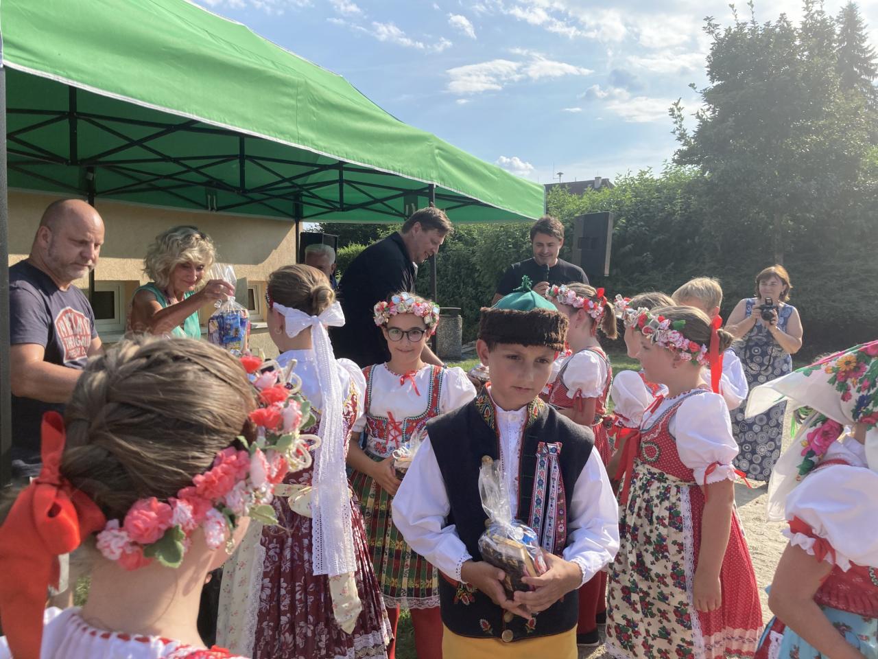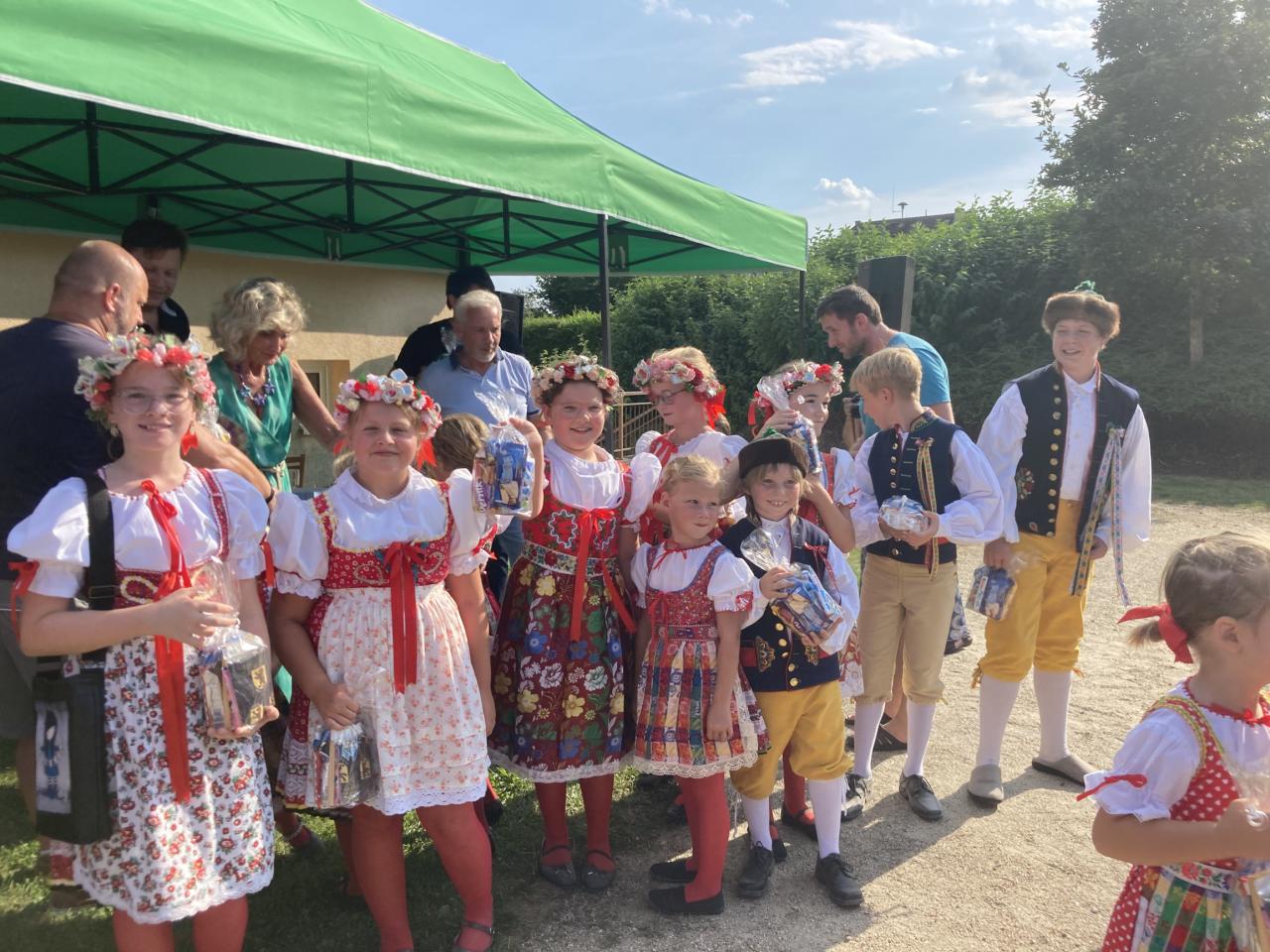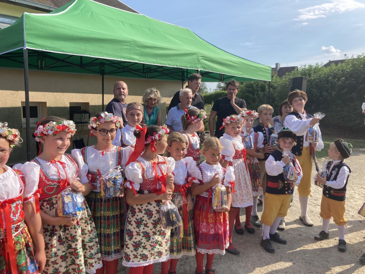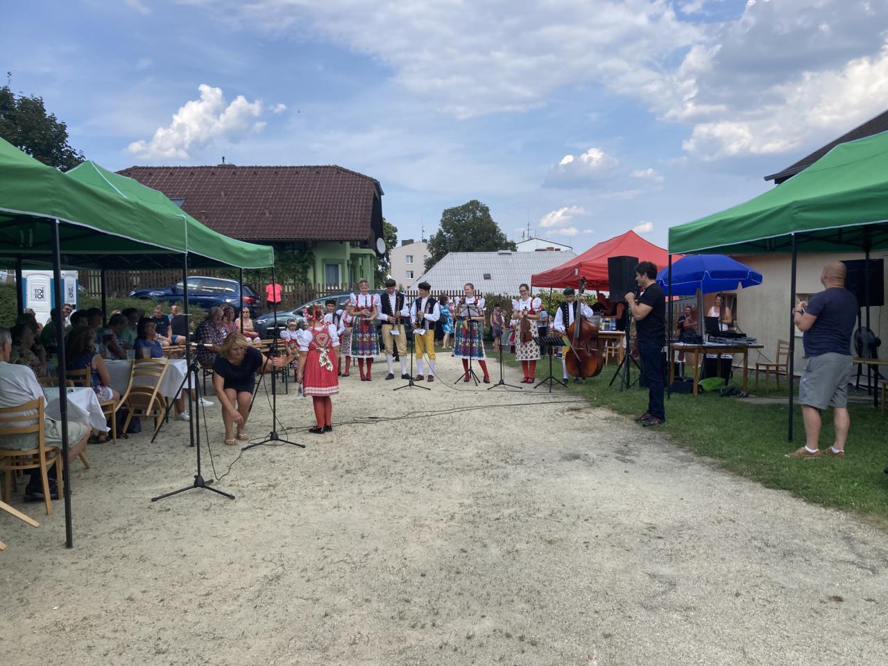 Slunečné odpoledne zpříjemnila talk show „Léčba smíchem“ v podání Zuzany Bubílkové, Miroslava Šimůnka a Milana Pitkina a vystoupení 33 členného Dětského souboru Mráček.